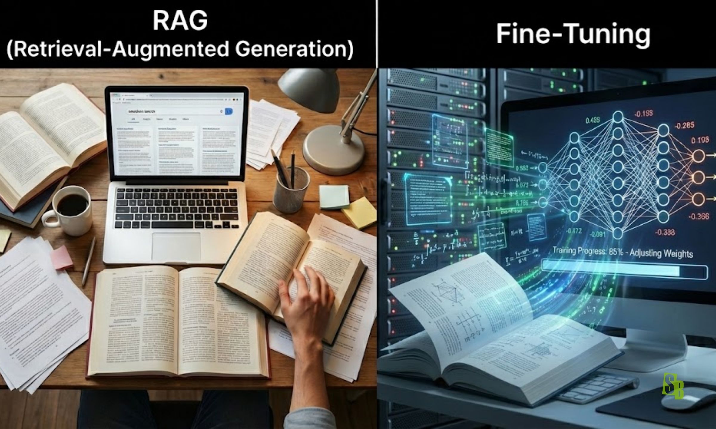 At Sattvabit, we believe in architecting AI solutions based on reality and ROI, not hype. To do that, you need a clear mental model to distinguish between the two primary ways of customizing an LLM: RAG (Retrieval-Augmented Generation) and Fine-Tuning.
