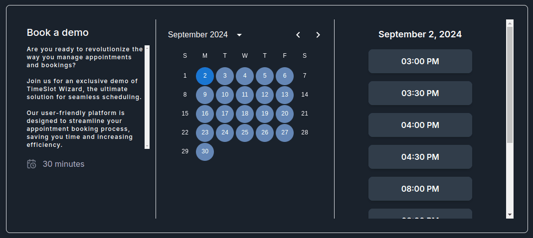 For further insights into how Timeslot Wizard can transform your appointment scheduling, read our blog: Elevate Your Appointment Scheduling with Timeslot Wizard: A Game-Changer for Businesses